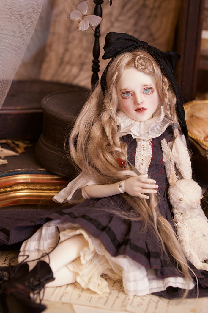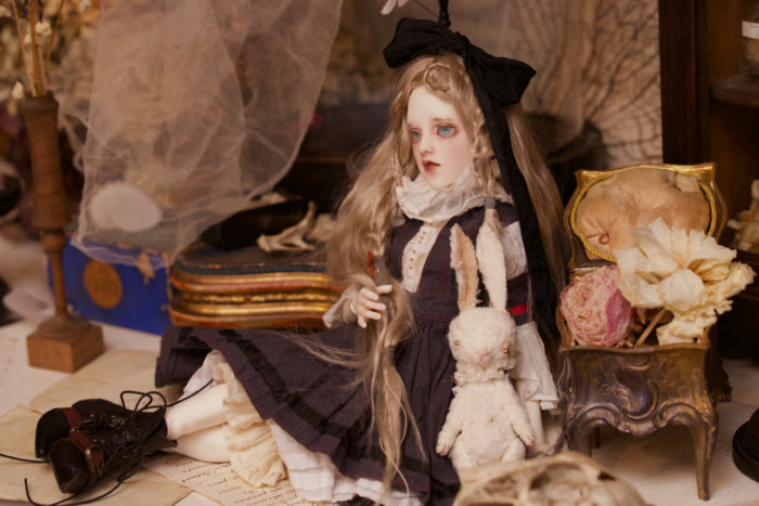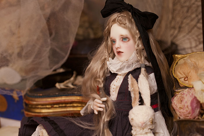 Novricaはこのウィッグをつけているとちょっとアリスっぽいなと思ってうさぎさんを近くに置いて撮ってみました。